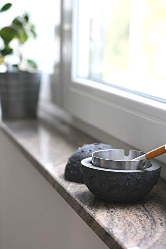 Hoge kwaliteit: handgemaakt van hoogwaardig beton. Het afneembare inzetstuk is van roestvrij staal. Onder de asbakken bevindt zich een viltmat ter bescherming van het oppervlak van de tafel.
