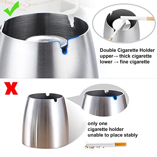 【Asbak van roestvrij staal】 De asbak bestaat uit geborsteld roestvrij staal, heeft een lange levensduur, is bestand tegen oxidatie en corrosie, en niet breekbaar. En met een conisch design staat de asbak groot stabiel op tafel, ook als hij winderig of regenachtig is, zal hij niet zo gemakkelijk weggeblazen.