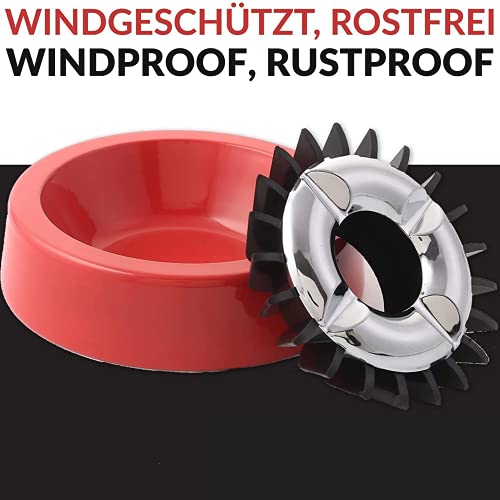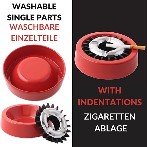 Praktisch: 3 glutkiller windasbakken rood met 21 openingen voor het doden van sigaretten, sigaren, sigaren en sigarillos; materiaal: metalen behuizing, afneembare kunststof binnenkant met chromen ring.