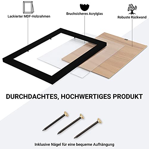 CABBEL Set van 3 fotolijsten DIN A4 21×30 MDF houten lijst met onbreekbaar acrylglas, ideaal voor collages, portretten en certificaten in zwart