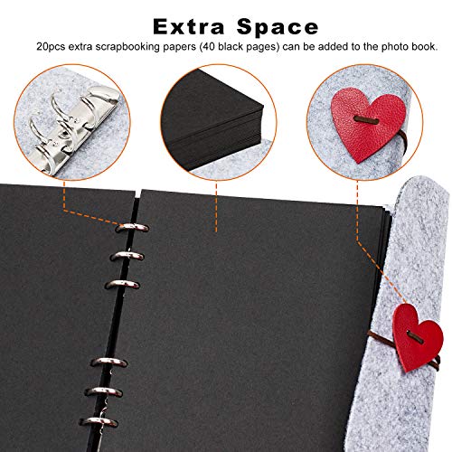 Praktisch: 20 extra scrapbooking-papier (40 zwarte pagina’s) kunnen aan het fotoboek worden toegevoegd. Kan worden gebruikt als plakboek, bruiloftsplanner, gastenboek, reisnotitieboek, dagboek, opslagboek, schetsboek of begrafenis condoleance boek.