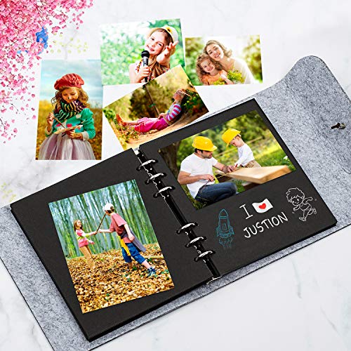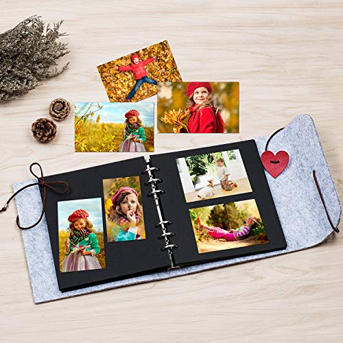 Leenou Fotoalbum om zelf vorm te geven, vilt, scrapbook, zwarte pagina’s, fotoboek om in te plakken, fotoalbums, Valentijnsdag, verjaardag, trouwdag, vrouwen, grijs, vilten producten (19,5 x 18 cm)