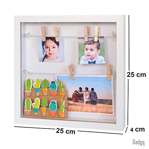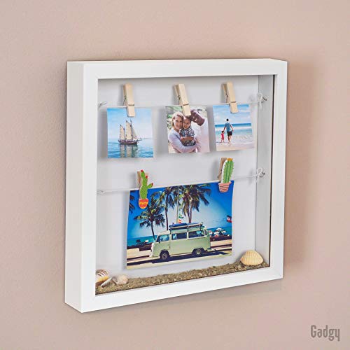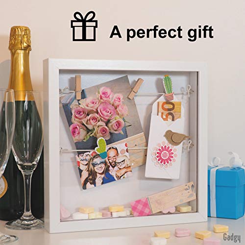 Gadgy 3D-fotolijst om te vullen, wit objectframe, fotolijst met klemmen, fotolijstje, geldgeschenk, 3D-fotolijst, diep met glas, 3D-frame, doos voor geschenken