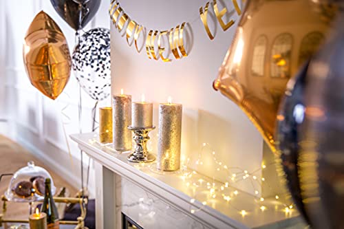 Die Bolsius Rustik Stumpenkerze Shimmer Gold hat eine funkelnde Goldfarbe mit glänzendem Metallic-Finish. Die Kerze hat eine Höhe von 13 cm und eine Brenndauer von bis zu 60 Stunden.