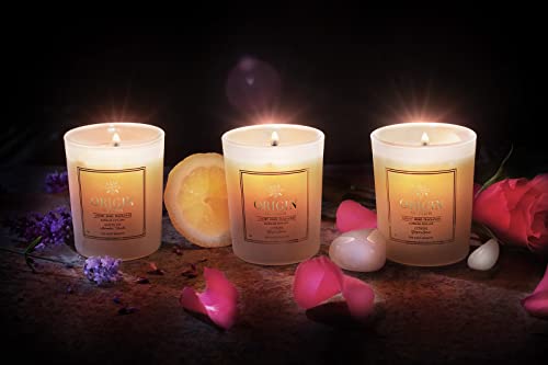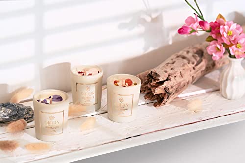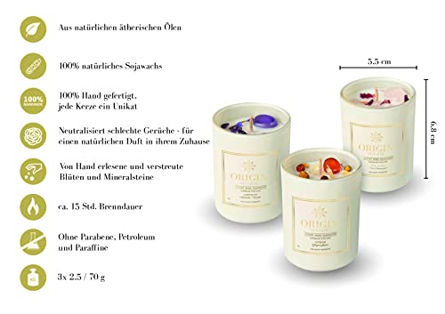 Origin of Earth Geurkaarsen in glas (set van 3), natuurlijke sojawaskaars, 36 uur brandduur (12 uur per kaars), kerstkaars, cadeau voor vrouwen, geurkaars, feestdagkaars, 210 g (70 g per kaars)