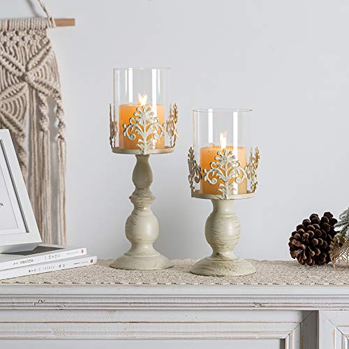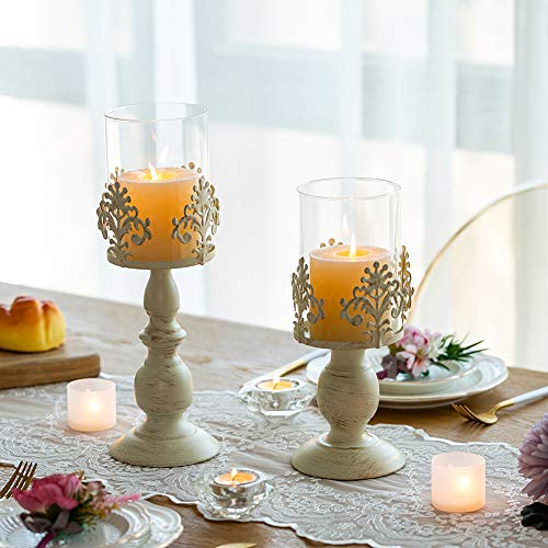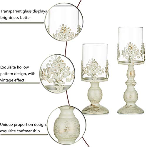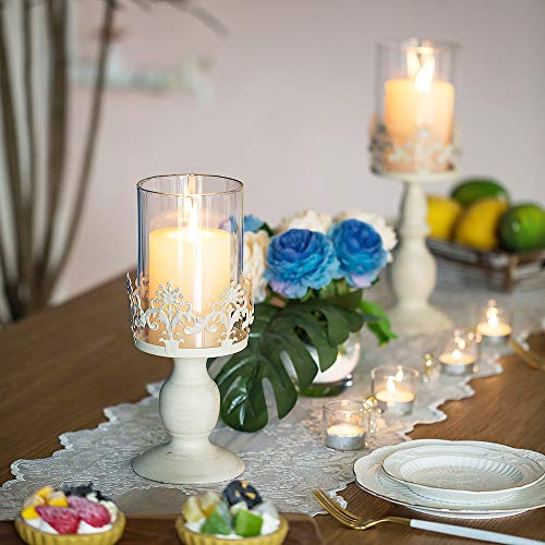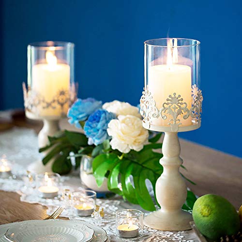 🎄PAKET ENTHALTEN: 1 × 25cm & 1 × 33cm Höhe Mittelstücke Vintage weiße Säule Kerzenhalter. Kerzen sind nicht enthalten. Da die Verpackung im Frühstadium nicht stark genug ist, kann das Glas beim Transport leicht beschädigt werden. Jetzt wurde unsere Verpackung aufgerüstet und Sie können sie mit Vertrauen kaufen!