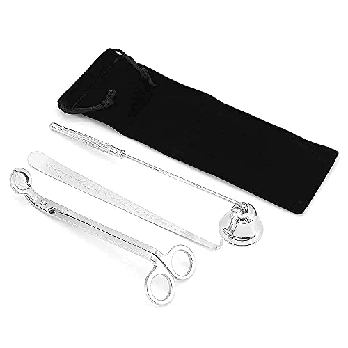 Specification: MoYouno 3-delige Candle Cover Tools-kit, Wick Trimmer, Candle Snuffer, Wick Dipper, kandelaarset van roestvrij staal (zilver)