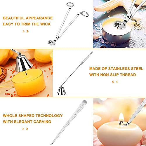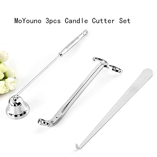 MoYouno 3-delige Candle Cover Tools-kit, Wick Trimmer, Candle Snuffer, Wick Dipper, kandelaarset van roestvrij staal (zilver)
