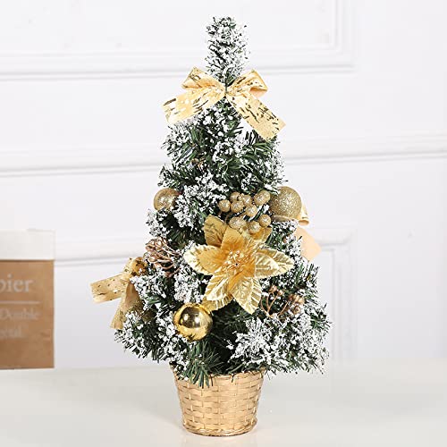 Lovimoon Kerstboom 40 cm, voorverlichte versierde kerstboom voor thuis, kerst-desktop-decoratie boom met sokkel voor huishoudtextiel, goud