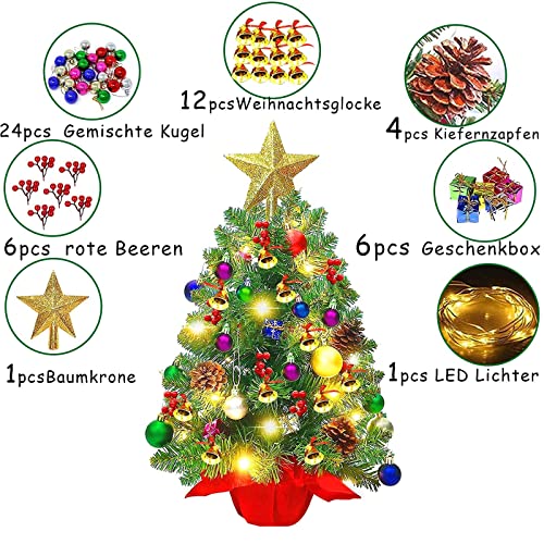 Specification: Mini kerstboom 50 cm, mini kerstboom met LED, mini kerstboom met lichtketting, kunstkerstboom, mini kerstboom set, miniatuur kerstboom