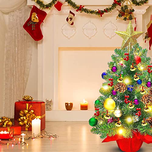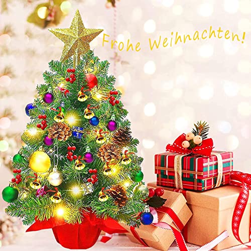 Mini kerstboom 50 cm, mini kerstboom met LED, mini kerstboom met lichtketting, kunstkerstboom, mini kerstboom set, miniatuur kerstboom