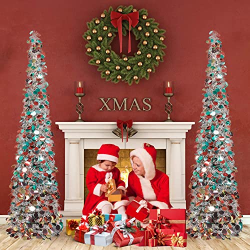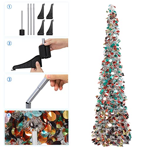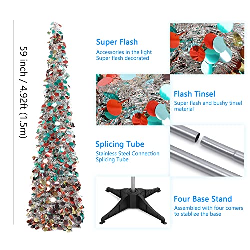 Specification: N&T NIETING Kunstkerstboom, 150 cm (5 ft), inklapbare lamettaboom met kleurrijke pailletten voor kerstdecoraties, huis, kantoordecoratie, zilver