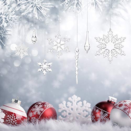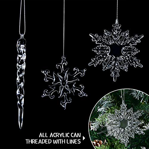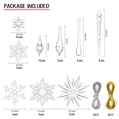 Specification: YQing 61 stuks acryl sneeuwvlokken kerstboom ijspegelset kerstversiering set kerstboomversiering boomhanger Kerstmis ijspegels met touw voor kerstboom party decoraties