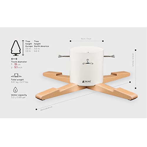 Specification: Tree Nest Design kerstboomstandaard Pine Christmas – boomhoogte tot 3 m, stamdiameter 13 cm, waterreservoir voor 3,2 l water, wit, hout en metaal