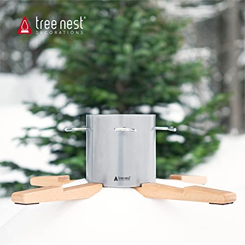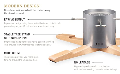 Tree Nest Design kerstboomstandaard Pine Christmas – boomhoogte tot 3 m, stamdiameter 13 cm, waterreservoir voor 3,2 l water, wit, hout en metaal