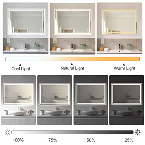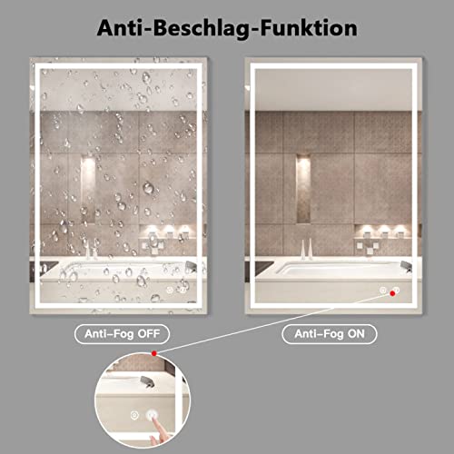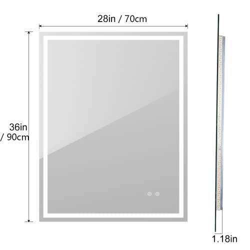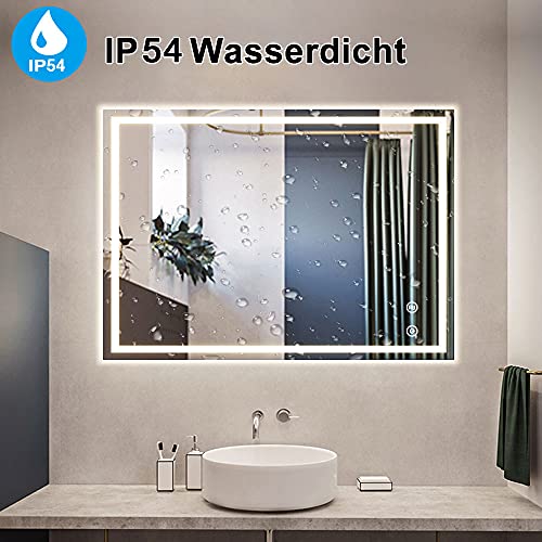 Specification: Depuley Badkamerspiegel met verlichting 90 x 70 cm, wandspiegel met aanraakschakelaar, anti-condens, IP44 energiebesparend, LED-spiegel badkamerspiegel met 3 lichtkleuren dimbaar warm wit/koud wit/neutraal