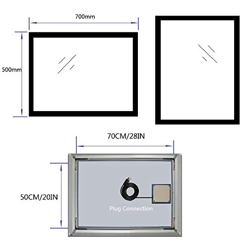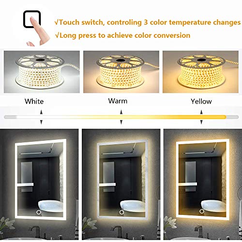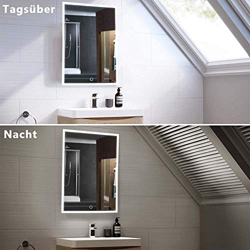 Specification: Led-badkamerspiegel, 50 x 70 cm, wandspiegel, badkamerspiegel met aanraaksensor, wit/warm wit/warm licht, verticale of horizontale ophanging