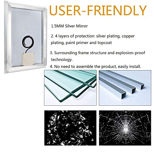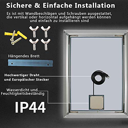 ✨5 mm bronsvrij kristalglas: de hoogwaardige glascoating van de badkamerspiegel op basis van zilver zorgt voor een hoge stabiliteit en lange houdbaarheid en een gemakkelijke onderhoud.