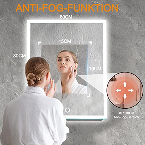 Specification: Led-badkamerspiegel, 60 x 80 cm, wandspiegel, badkamerspiegel met aanraaksensor, wit/warm wit/warm licht, verticale of horizontale ophanging