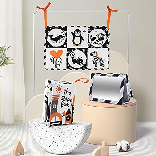 Dequate Weiche Stoffbücher für Babys, hoher Kontrast Babybuch, Bauchzeit-Bodenspiegel, schwarz und weiß, Entwicklungsaktivität, sensorisches Hängespielzeug, Geschenk-Sets für Kleinkinder