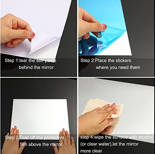 Kwaliteitsmateriaal: Onze flexibele spiegels zonder PET zijn gemaakt van PET-materiaal en hebben een glad oppervlak en een goede textuur. De zelfklevende achterkant is praktisch voor jou. Als er vlekken of vingerafdrukken zijn, veeg je ze voorzichtig af met een doek of katoenen doek