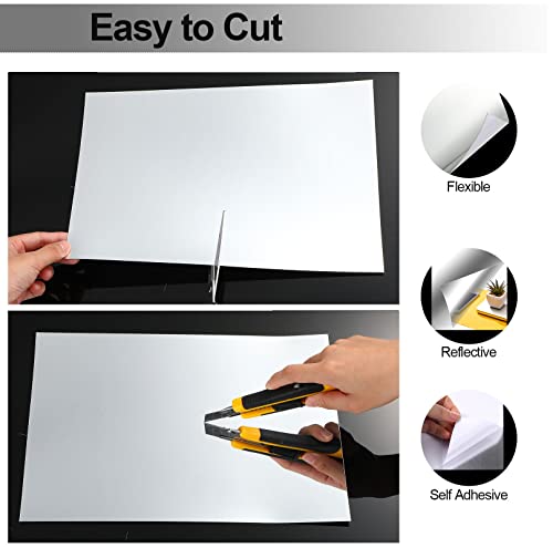 Eenvoudig te plakken en te gebruiken: de flexibele spiegelfolies zijn voorzien van een witte beschermfolie op het oppervlak (om het oppervlak van de spiegel tegen vernietiging of krassen tijdens het transport te beschermen). Je hoeft ze alleen voor gebruik af te strijken en van lijm te voorzien. Zelfklevend op de achterkant, kan op elk schoon en glad oppervlak worden geplakt