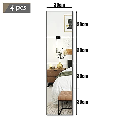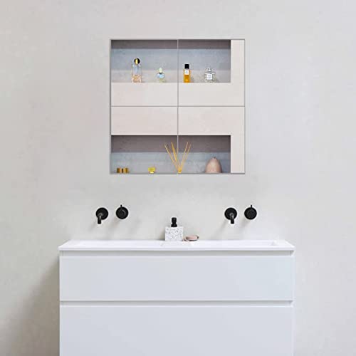 Muzilife Spiegeltegels van glas, 4 stuks, 30 x 30 cm, doe-het-zelf, wandspiegel met 4 kleefmatjes, HD-spiegeltegels, set in keuken, woonkamer en badkamer