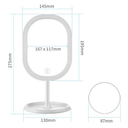【Led-licht & touchscreen】 21 leds branden rond de spiegelrand, kan bij weinig licht of donker worden gebruikt. Zachte verlichting, voldoet aan de behoeften van make-up. Accepteert een zeer gevoelig touchscreen, waarmee je door de schakelaar aan of uit kunt schakelen en de helderheid kunt aanpassen.