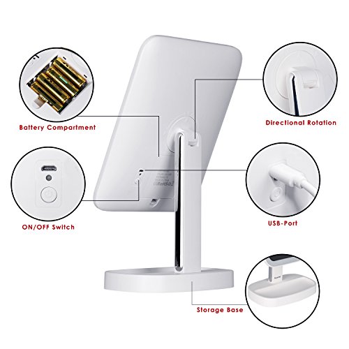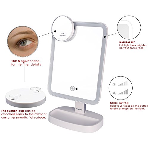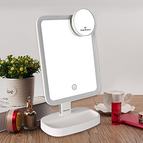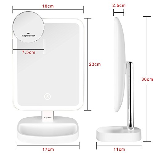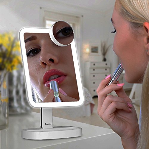Specification: Auxmir Make-up spiegel met ledverlichting, scheerspiegel, verlicht met niet-verblindend licht en dimbare helderheid voor opmaken, scheren en gezichtsverzorging, wit
