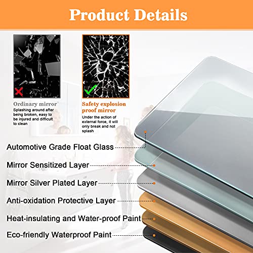 Explosiebestendige behandeling: het frame bestaat uit sterk metaal, dat het gewicht van de spiegel kan dragen. Met opbergvak kun je kleine voorwerpen op de kaptafel opbergen. De spiegel heeft de CE/ROHS/FCC-certificering doorstaan. Dankzij de explosiebestendige technologie hoef je je geen zorgen te maken over de veiligheid en het gebruik van gebroken spiegels.