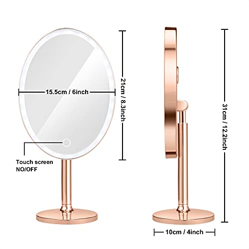 Specification: Eygood Kosmetikspiegel Mit Dimmbares LED Licht, 8x Vergrößerungsspiegel, Tischspiegel Schminkspiegel mit Beleuchtung für Zuhause und Unterwegs(Roségold)