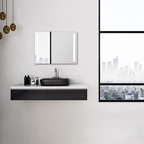 De moderne en energiebesparende ledtechnologie met een warme lichtkleur van 4200 Kelvin laat het spiegelbeeld natuurlijk uitzien en het bad of het toilet stralen