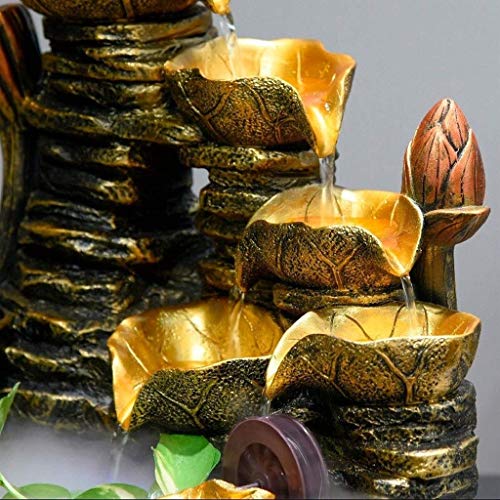 2. Der Innenbrunnen besteht aus umweltfreundlichem Harz und simuliert einen Felslotusteich. Die Textur ist zart und klar, leicht und langlebig, komfortabel und elegant zu Hause (grüne Pflanzen sind nicht enthalten, bitte kaufen Sie sie selbst).